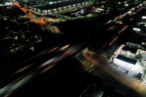 FILE PHOTO: A nighttime view of vehicle traffic along the Interstate 405 (I-405) highway in Carson, California, U.S., March 11, 2022. Picture taken March 11, 2022. Picture taken with a drone and long exposure. REUTERS/Bing Guan