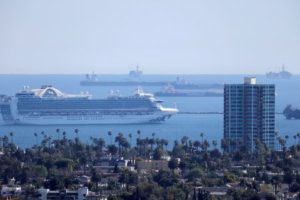 FILE PHOTO: Crude oil tankers Stella, Sofia and New Ambition are shown at anchor past the cruise ship Crown Princess off the coast of Long Beach, California, U.S., March 8, 2022. REUTERS/Mike Blake/File Photo