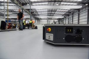 FILE PHOTO: Engineers at UK electric van and bus maker Arrival test a specially developed autonomous robot at the startup’s low-cost “microfactory” in Bicester, Britain, August 3, 2021. Picture taken August 3, 2021. REUTERS/Nick Carey