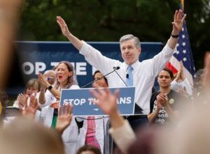 North Carolina Governor Roy Cooper speaks to abortion rights supporters shortly before vetoing the SB20 legislation limiting most abortions to the first trimester of pregnancy, a sharp drop from the state’s current limit of 20 weeks gestation, in Raleigh, North Carolina, U.S. May 13, 2023. REUTERS/Jonathan Drake