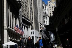 FLE PHOTO: A woman wears a mask near the New York Stock Exchange (NYSE) in the Financial District in New York, U.S., March 4, 2020. REUTERS/Brendan McDermid