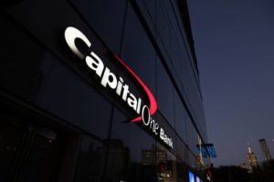 FILE PHOTO: Signage is seen outside a Capital One Bank in Manhattan, New York, U.S., November 12, 2021. REUTERS/Andrew Kelly