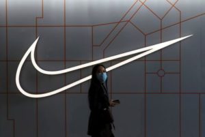 FILE PHOTO: A woman walks past a store of the sporting goods retailer Nike Inc at a shopping complex in Beijing, China March 25, 2021. REUTERS/Florence Lo/File Photo