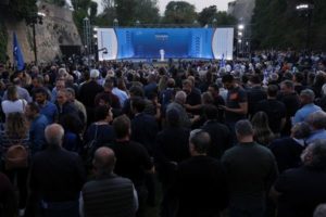 Greek Prime Minister Kyriakos Mitsotakis gives a speech during an election campaign event in Heraklion on the island of Crete, Greece May 15, 2023. REUTERS/Louiza Vradi