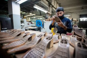 A worker puts glue on shoe soles in a shoe making factory, as small and medium-sized businesses struggle amid rising inflation, on the outskirts of Buenos Aires, Argentina, May 4, 2023. REUTERS/Mariana Nedelcu