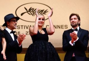 FILE PHOTO: The 76th Cannes Film Festival – Opening ceremony and screening of the film “Jeanne du Barry” Out of competition – Red Carpet arrivals – Cannes, France, May 16, 2023. Jury members Atiq Rahimi and Julia Ducournau and Ruben Ostlund, Jury President of the 76th Cannes Film Festival pose. REUTERS/Sarah Meyssonnier/File Photo