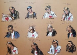 Victim impact statements are given during the sentencing hearing of Sayfullo Saipov, who was convicted in January of murder and terrorism charges after mowing down cyclists and pedestrians with a truck, in New York, U.S., May 17, 2023 in this courtroom sketch. REUTERS/Jane Rosenberg