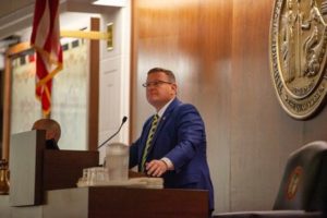 Speaker of the House Tim Moore reacts after North Carolina Republican lawmakers passed a vote to override Democratic Governor Roy Cooper’s veto of a bill that would ban most abortions in the state after 12 weeks, in Raleigh, North Carolina, U.S. May 16, 2023. REUTERS/Erin Siegal McIntyre