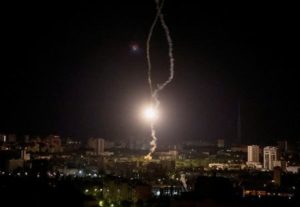 FILE PHOTO: Explosion of a missile is seen in the sky over the Kyiv during a Russian missile strike, amid Russia’s attack on Ukraine, in Kyiv, Ukraine May 16, 2023. REUTERS/Gleb Garanich/File Photo