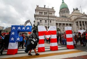 FILE PHOTO: A demonstrator wearing a costume takes part in a protest outside the National Congress, as members of the parliament debate the government’s agreement with the International Monetary Fund (IMF), in Buenos Aires, Argentina March 10, 2022. REUTERS/Agustin Marcarian/File Photo