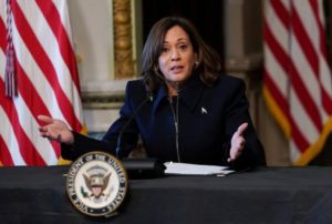 FILE PHOTO: U.S. Vice President Kamala Harris hosts a roundtable discussion with young minority small businessmen at the White House in Washington, U.S., May 16, 2023. REUTERS/Kevin Lamarque