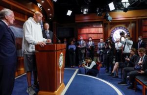 U.S. Senator John Fetterman (D-PA) speaks during a press conference on Capitol Hill about 11 Senate Democrats who sent a letter to President Joe Biden urging him to invoke the 14th Amendment to avoid a catastrophic debt default, in Washington, U.S., May 18, 2023. REUTERS/Evelyn Hockstein