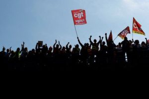 FILE PHOTO: Protesters, holding CGT labour union flags, attend a demonstration during the ninth day of nationwide strikes and protests against French government’s pension reform, in Nice, France, March 23, 2023. REUTERS/Eric Gaillard/File Photo
