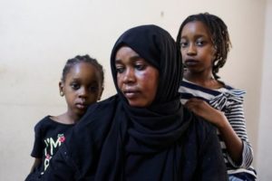 Sanaa Mahmoud, a Sudanese displaced woman, and her daughters Talia and Talien, who fled after the last crisis in Sudan’s capital Khartoum, look on during an interview with Reuters as they stay at a shelter in the district of Boulaq Al-Dakrour in Giza, Egypt May 13, 2023. REUTERS/Hadeer Mahmoud