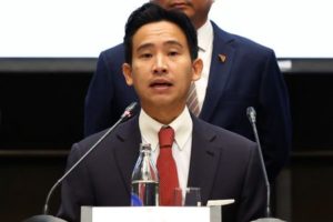 Move Forward Party leader, Pita Limjaroenrat speaks to the media following a meeting with coalition partners in Bangkok, Thailand, May 18, 2023. REUTERS/Athit Perawongmetha