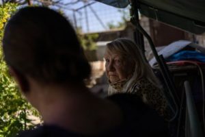 Valentyna Haras, 74, looks on at her home garden, as Russia’s attack on Ukraine continues, in Kherson, Ukraine, May 3, 2023. REUTERS/Carlos Barria