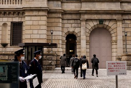 FILE PHOTO: Visitors are seen at the headquarters of Bank of Japan in Tokyo