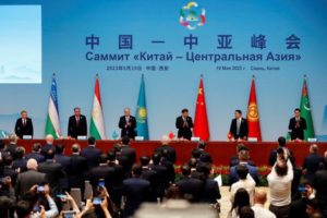 Chinese President Xi Jinping, Kazakhstan’s President Kassym-Jomart Tokayev, Kyrgyzstan’s President Sadyr Japarov, Tajikistan’s President Emomali Rahmon, Turkmenistan’s President Serdar Berdymukhamedov and Uzbekistan’s President Shavkat Mirziyoyev arrive for the joint press conference of the China-Central Asia Summit in Xian, Shaanxi province, China May 19, 2023. REUTERS/Florence Lo/Pool