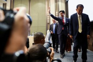 Move Forward Party leader Pita Limjaroenrat waves as he walks following a meeting with coalition partners in Bangkok, Thailand, May 18, 2023. REUTERS/Athit Perawongmetha REFILE – QUALITY REPEAT