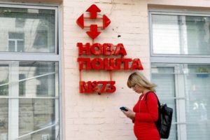 A woman stands next to a branch of the Nova Poshta (New Post) delivery service in downtown, amid Russia’s attack on Ukraine, in Kyiv, Ukraine May 15, 2023. REUTERS/Valentyn Ogirenko