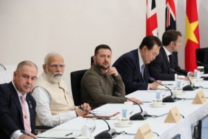 Ukrainian President Volodymyr Zelenskiy takes part in the G7, partner countries and Ukraine meeting as a part of the G7 leaders’ summit in Hiroshima, western Japan May 21, 2023, in this handout photo released by Ministry of Foreign Affairs of Japan. Ministry of Foreign Affairs of Japan/HANDOUT via REUTERS