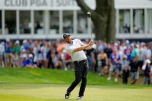 May 21, 2023; Rochester, New York, USA; Michael Block takes a shot on the fourth hole during the final round of the PGA Championship golf tournament at Oak Hill Country Club. Mandatory Credit: Aaron Doster-USA TODAY Sports