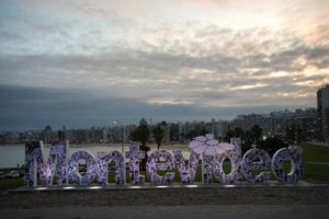 A Montevideo sign that overlooks Pocitos bay is seen covered with images of people who went missing during Uruguay’s military dictatorship (1973-1985), in Montevideo, Uruguay May 7, 2023. REUTERS/Mariana Greif