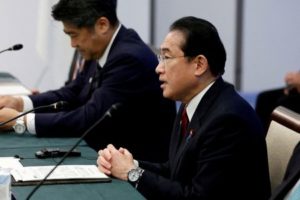FILE PHOTO: Japanese Prime Minister Fumio Kishida speaks during a bilateral meeting with visiting U.S. President Joe Biden in Hiroshima, Japan, May 18, 2023. Kiyoshi Ota/Pool via REUTERS