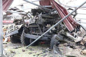 A vehicle destroyed by a Russian missile strike is seen at a compound of a fire depot of the State Emergency Service, amid Russia’s attack on Ukraine, in Dnipro, Ukraine May 22, 2023. Press service of the State Emergency Service of Ukraine in Dnipropetrovsk region/Handout via REUTERS