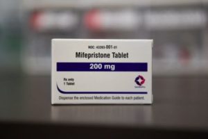FILE PHOTO: A box containing a Mifepristone tablet is seen at Blue Mountain Clinic in Missoula, Montana, U.S. February 28, 2023. REUTERS/Callaghan O’Hare