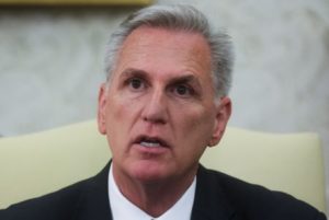 House Speaker Kevin McCarthy (R-CA) talks to reporters as he sits with U.S. President Joe Biden for debt limit talks in the Oval Office at the White House in Washington, U.S., May 22, 2023. REUTERS/Leah Millis
