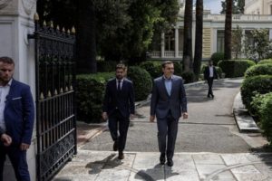 Leftist Syriza party leader Alexis Tsipras leaves the Presidential Palace after a meeting with Greek President Katerina Sakellaropoulou, where he received an official mandate to try to form a coalition government after the general election in Athens, Greece, May 23, 2023. REUTERS/Alkis Konstantinidis