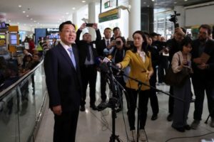 Xie Feng, China’s new ambassador to the U.S., addresses the media as he arrives at JFK airport in New York City, U.S., May 23, 2023. REUTERS/Brendan McDermid