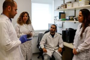 Dr. Omri Bronstein of Tel Aviv University’s Steinhardt Museum of Natural History and School of Zoology speaks with his research team at a laboratory in Tel Aviv, Israel May 23, 2023. REUTERS/Corinna Kern
