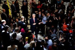 U.S. House Speaker Kevin McCarthy (R-CA) speaks with reporters at the U.S. Capitol in Washington, U.S. May 24, 2023. REUTERS/Jonathan Ernst