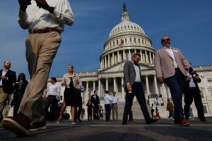 Visitors walk on the plaza at the U.S. Capitol in the midst of ongoing negotiations seeking a deal to raise the United States’ debt ceiling and avoid a catastrophic default, in Washington, U.S. May 24, 2023. REUTERS/Jonathan Ernst