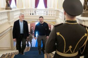 FILE PHOTO: Ukraine’s President Volodymyr Zelenskiy welcomes Czech President Petr Pavel, amid Russia’s attack on Ukraine, in Kyiv, Ukraine April 28, 2023. Ukrainian Presidential Press Service/Handout via REUTERS