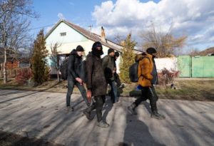 FILE PHOTO: Migrants from Syria walk close to the border with Hungary and Romania in the village of Majdan, Serbia, February 3, 2022. Picture taken February 3, 2022. REUTERS/Bernadett Szabo