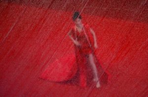 A guest is seen on the red carpet through a rain-covered tarp at the 72nd Cannes Film Festival, France, May 20, 2019. Reuters Photographer Eric Gaillard first photographed the festival forty years ago. REUTERS/Eric Gaillard