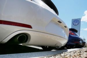FILE PHOTO: New Volkswagen vehicles are parked with their exhaust pipes facing the street at a dealership in Medford, Massachusetts, U.S., June 15, 2016. REUTERS/Brian Snyder