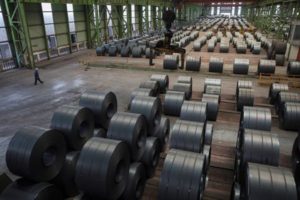 A worker walks by steel rolls at the Chongqing Iron and Steel plant in Changshou, Chongqing, China August 6, 2018. Picture taken August 6, 2018. REUTERS/Damir Sagolj/File Photo