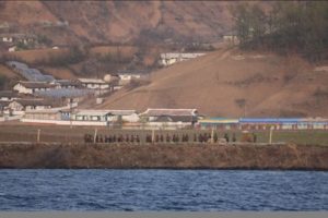 FILE PHOTO: Men at a field in North Korea’s Sinuiju are seen from Dandong, Liaoning province, China April 20, 2021. Picture taken April 20, 2021. REUTERS/Tingshu Wang/File Photo