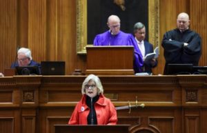 South Carolina Republican state senator Katrina Frye Shealy debates a six week abortion ban at the state legislature in Columbia, South Carolina, U.S. May 23, 2023. REUTERS/Sam Wolfe