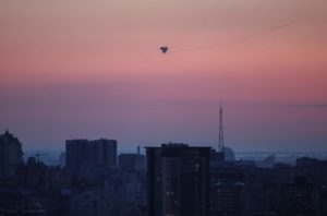 An explosion of a missile is seen in the sky over the city during a Russian missile strike, amid Russia’s attack on Ukraine, in Kyiv, Ukraine May 26, 2023. REUTERS/Gleb Garanich