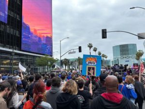 Union workers rally to fight alongside Writers Guild of America for liveable wages and future contracts in Downtown Los Angeles, California, U.S., May 26, 2023. REUTERS/Jorge Garcia
