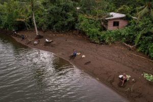 FILE PHOTO: Local residents fish in front of the abandoned site of the old Vunidogoloa Village, Fiji, July 19, 2022. REUTERS/Loren Elliott
