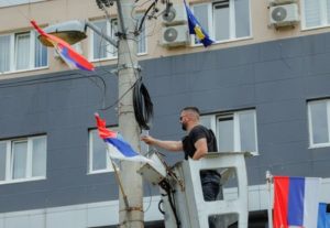 Kosovo special police forces replace video surveillance at the municipal offices, after Serb protestors prevent a newly elected ethnic Albanian mayor from entering the office in Zvecan, in Leposavic, Kosovo, May 27, 2023.REUTERS/Ognen Teofilovski