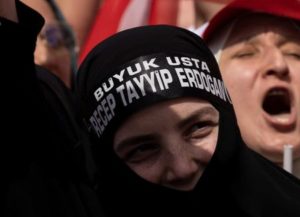 Supporters of Turkish President Tayyip Erdogan attend a rally, ahead of the May 28 presidential runoff vote, in Istanbul, Turkey May 27, 2023. Headband of the supporter reads, “Grand Master Recep Tayyip Erdogan” REUTERS/Umit Bektas