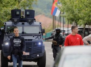 Kosovo special police forces guard the municipal offices in Zvecan after Serb protestors prevent a newly elected ethnic Albanian mayor from entering the office in Zvecan, Kosovo, May 27, 2023.REUTERS/Ognen Teofilovski