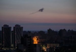 Smoke rises in the sky over the city after a Russian drone strike, amid Russia’s attack on Ukraine, in Kyiv, Ukraine May 28, 2023. REUTERS/Gleb Garanich